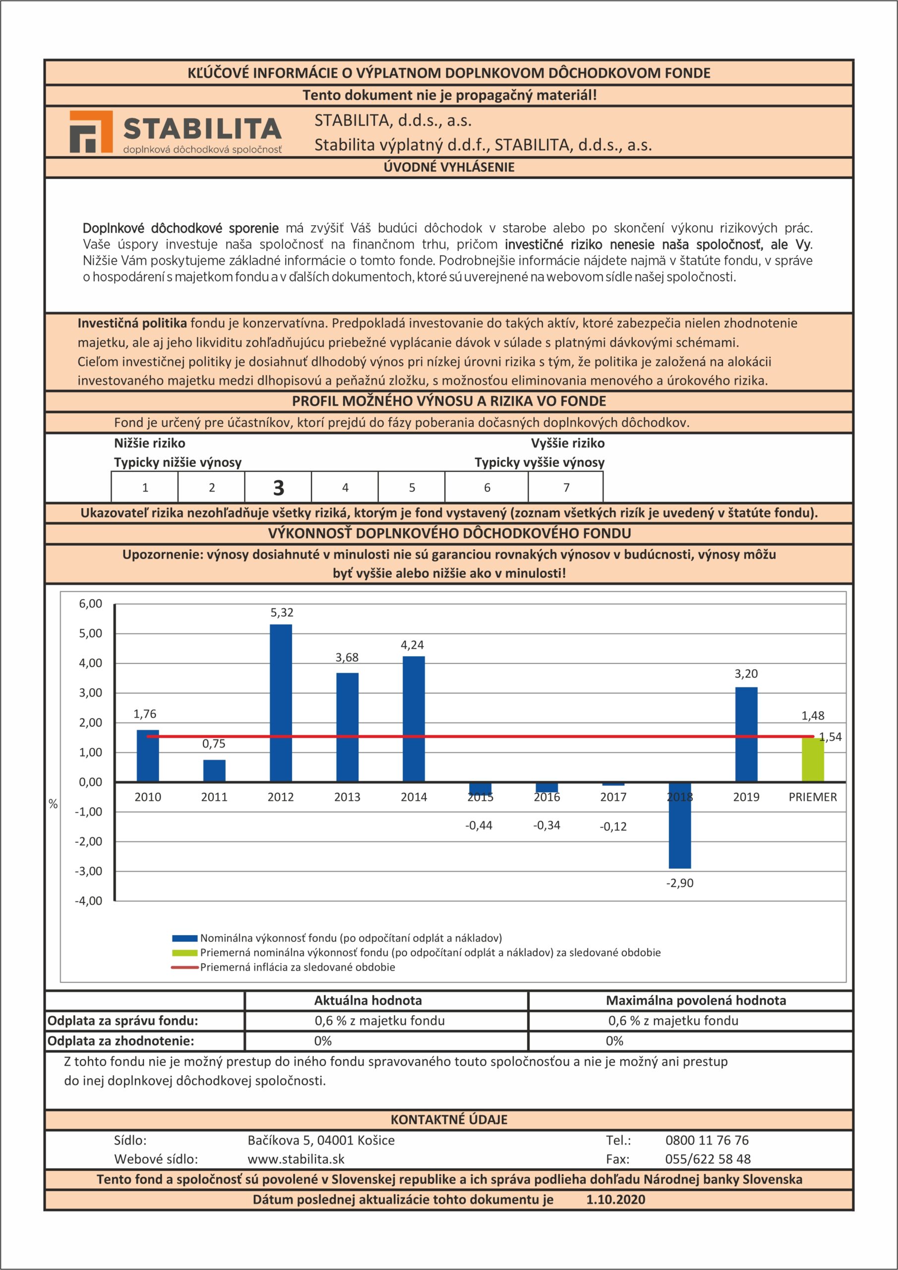 Kľúčové informácie o Stabilita výplatnom d.d.f., STABILITA, d.d.s., a.s.